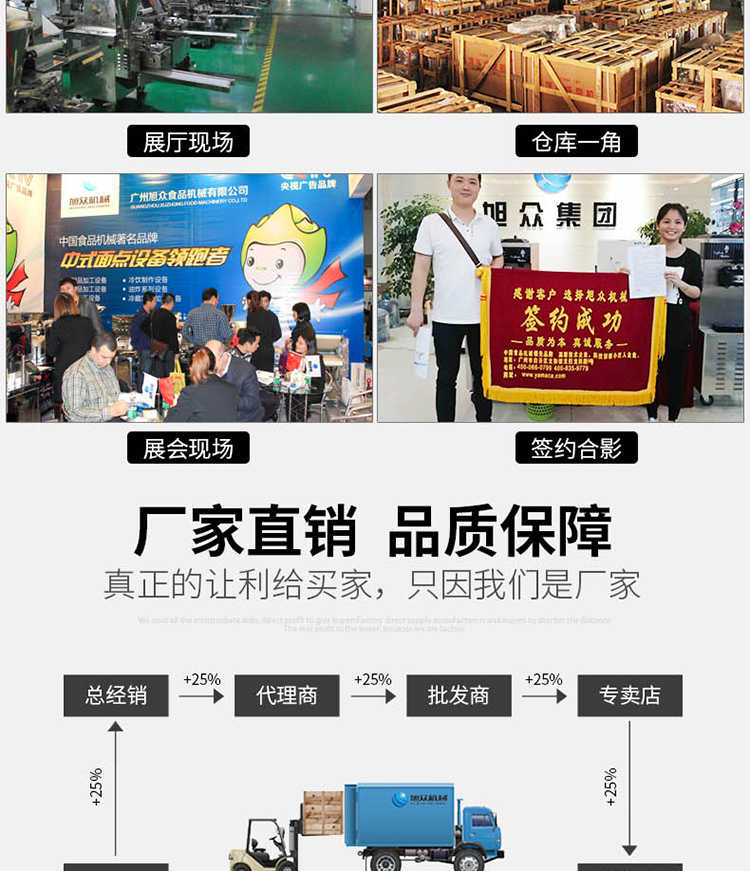廣州旭眾食品機(jī)械有限公司是一家集科研開發(fā),生產(chǎn)設(shè)計,營銷服務(wù)為一體的現(xiàn)代化生產(chǎn)企業(yè)?,F(xiàn)代化生產(chǎn)車間,精湛制造技術(shù),所產(chǎn)機(jī)械歷經(jīng)市場重重考驗,不斷贏得海內(nèi)外客戶的贊譽。