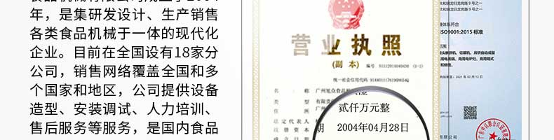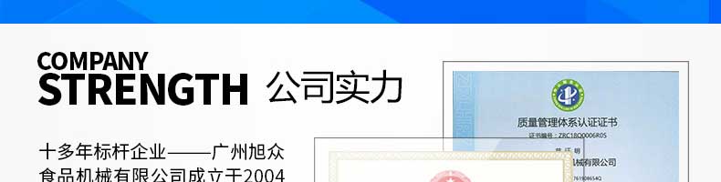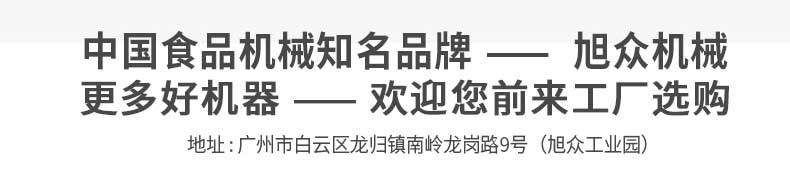 廣州旭眾食品機(jī)械有限公司是一家集科研開發(fā),生產(chǎn)設(shè)計(jì),營(yíng)銷服務(wù)為一體的現(xiàn)代化生產(chǎn)企業(yè)?,F(xiàn)代化生產(chǎn)車間,精湛制造技術(shù),所產(chǎn)機(jī)械歷經(jīng)市場(chǎng)重重考驗(yàn),不斷贏得海內(nèi)外客戶的贊譽(yù)。