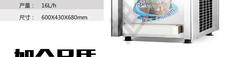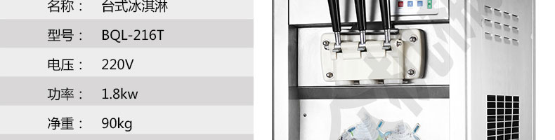 BQL-216T臺式冰淇淋機(jī),●選用國際名牌成熟制冷配套件和高效壓縮機(jī),融合旭眾精湛工藝輔以嚴(yán)格的質(zhì)量控制流程,使產(chǎn)品整體性能及品質(zhì)得以全面提升。●采用全數(shù)字電腦控制系統(tǒng),選用名牌優(yōu)質(zhì)電器元件,先進(jìn)的生產(chǎn)工藝,故障診斷,軟硬任意調(diào)制,自動修復(fù)功能,安全精確,可靠性更高。●專業(yè)成熟制冷系統(tǒng)設(shè)計(jì),選用世界名牌大功率專用壓縮機(jī),大大縮短冰淇淋成型時間,相同時間內(nèi)冰淇淋產(chǎn)量大幅度增加,使您生意火爆時依然得心應(yīng)手,為您創(chuàng)造財(cái)富。●安全平穩(wěn)的機(jī)械攪拌系統(tǒng),噪音更低、振動更小,使整機(jī)運(yùn)行性能達(dá)到國際先進(jìn)水平?!翊_保進(jìn)料溫度在0°C~35°C;環(huán)境溫度5°C~40°C勻可正常使用。