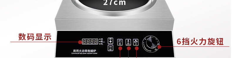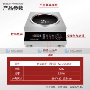 臺(tái)式凹爐(旋鈕)XZ-DSK2X2.,3500W爆炒大火力商用電磁爐。不銹鋼材質(zhì)電磁爐采用加厚不銹鋼架構(gòu),抗沖擊,耐磨耐壓,穩(wěn)定耐用,不易損壞,易于清潔。