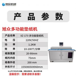 XZ-170多功能墊紙機,適用于大規(guī)模生產(chǎn)多功能墊紙機適用于包子、饅頭、豆包等需要墊包紙的食。伺服控制、墊紙長度可調(diào)整。高效墊紙告別人工旭眾牌ⅩZ-170多功能墊紙機適用于規(guī)模生產(chǎn)的食品企業(yè)制作包子機、饅頭等食品的自動墊包紙設(shè)備。