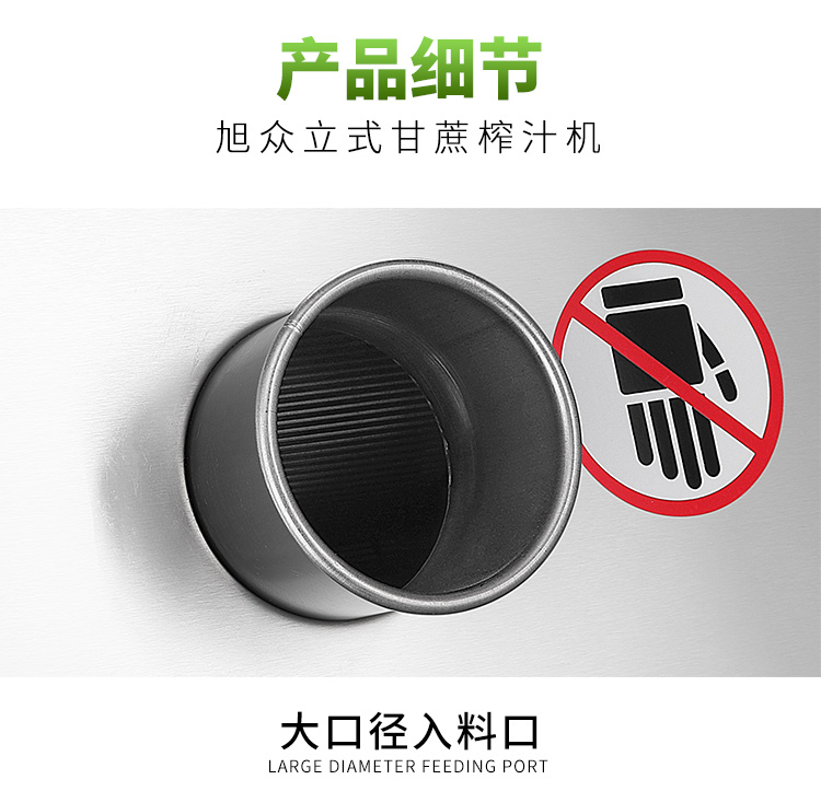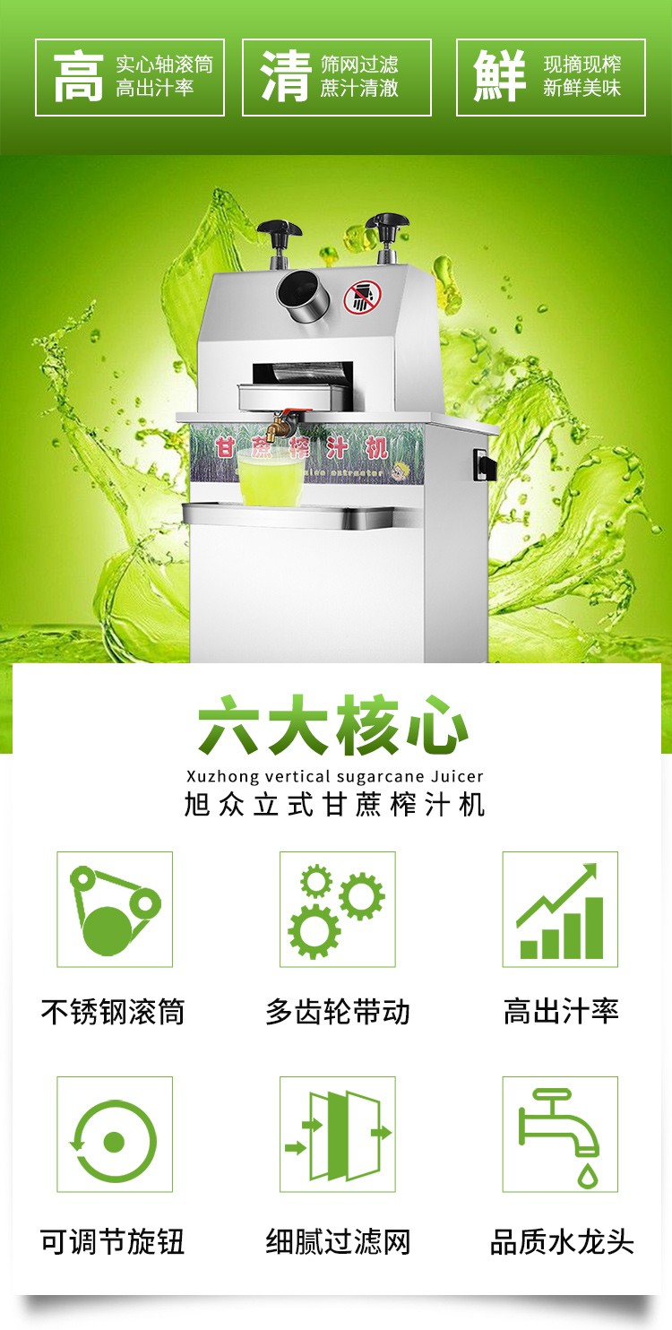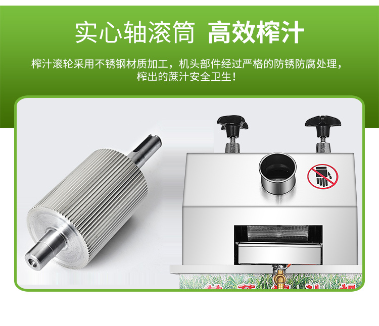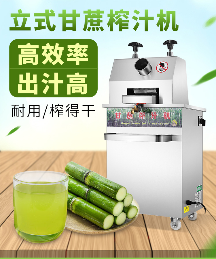立式甘蔗機(jī),該機(jī)采用不銹鋼材質(zhì)加工,機(jī)頭部件都經(jīng)過嚴(yán)格的防銹仿腐蝕處理,整機(jī)采用全封閉結(jié)構(gòu),可內(nèi)置蔗渣桶,保證渣汁不外泄,安全、干凈、衛(wèi)生。 適合賓館、卡拉OK廳、水果店、冷飲店、涼茶店、車站、超市等服務(wù)行業(yè)壓榨各種甘蔗之用。