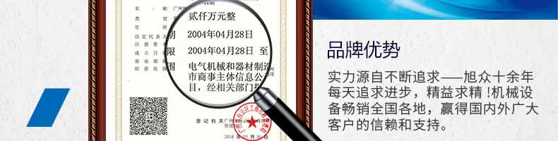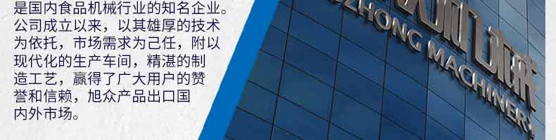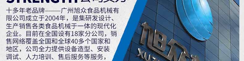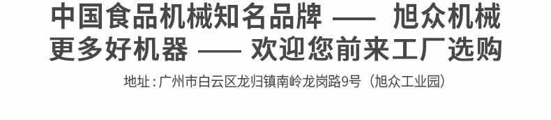 廣州旭眾食品機(jī)械有限公司是一家集科研開發(fā),生產(chǎn)設(shè)計(jì),營銷服務(wù)為一體的現(xiàn)代化生產(chǎn)企業(yè)。現(xiàn)代化生產(chǎn)車間,精湛制造技術(shù),所產(chǎn)機(jī)械歷經(jīng)市場重重考驗(yàn),不斷贏得海內(nèi)外客戶的贊譽(yù)。