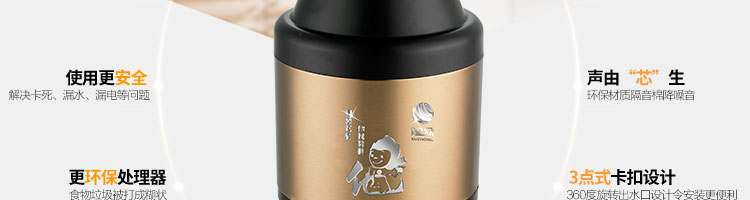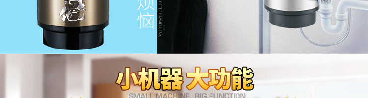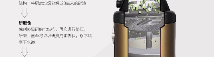 ACLQ56-廚房垃圾處理器,該機器是靠內(nèi)部結(jié)構(gòu)、零件組合達到處理垃圾的效果,通過碾、壓、擠、磨等系統(tǒng)的處理,在十幾秒內(nèi)安全將食物垃圾處理成小于3毫米的顆粒,隨著水流排入下水道,使用十分安全。