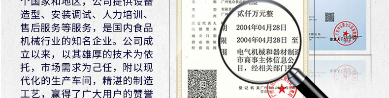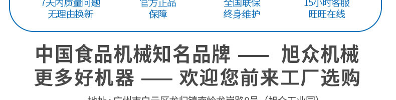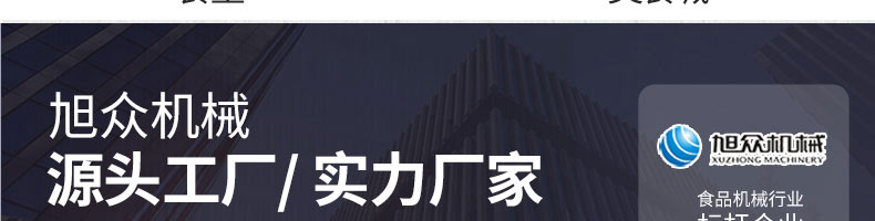 廣州旭眾食品機(jī)械有限公司是一家集科研開發(fā),生產(chǎn)設(shè)計(jì),營銷服務(wù)為一體的現(xiàn)代化生產(chǎn)企業(yè)?,F(xiàn)代化生產(chǎn)車間,精湛制造技術(shù),所產(chǎn)機(jī)械歷經(jīng)市場重重考驗(yàn),不斷贏得海內(nèi)外客戶的贊譽(yù)。