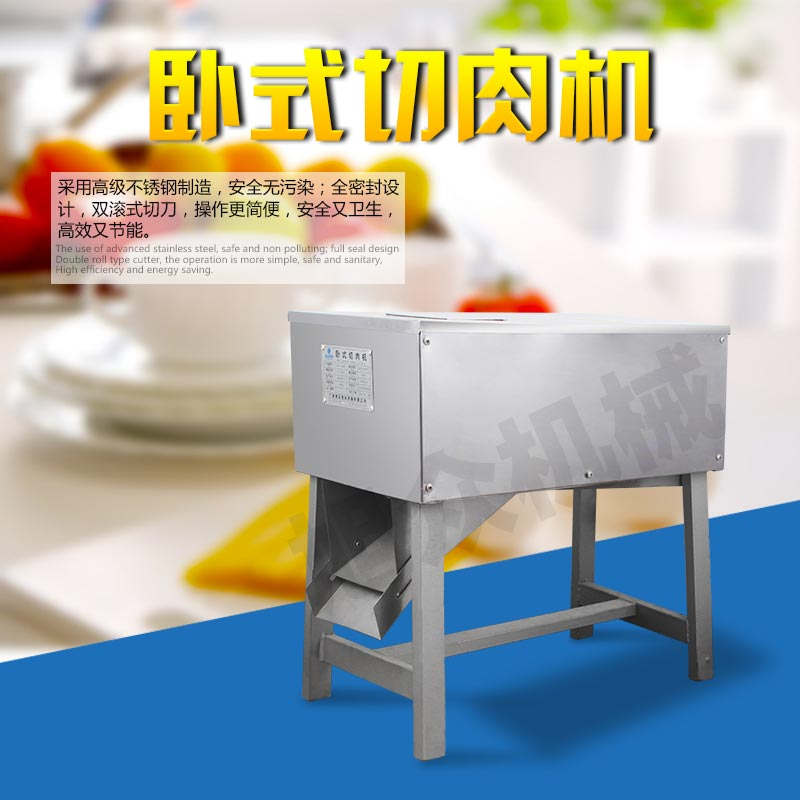 SX300B 臥式切肉機(jī),臥式切肉機(jī)均采用雙滾刀結(jié)構(gòu),有臥式和立式兩種型式。各種款式切肉機(jī)原動力和刀梳、切肉部分的原理,結(jié)構(gòu)大致相同,都具有結(jié)構(gòu)緊湊,外形美觀、操作方便、效率高、耗電小、清潔保養(yǎng)容易、安全衛(wèi)生、切肉效果好等優(yōu)點(diǎn)。
