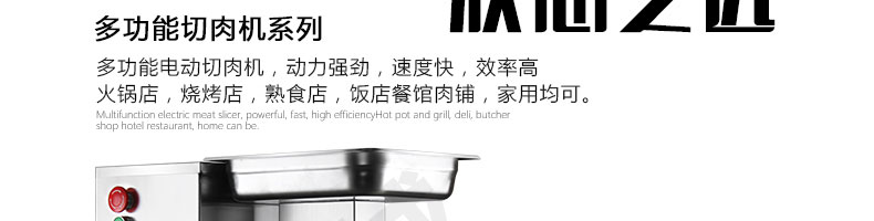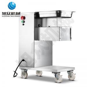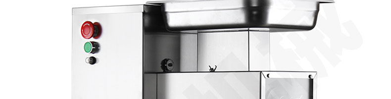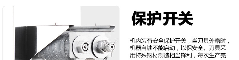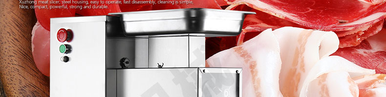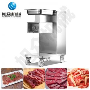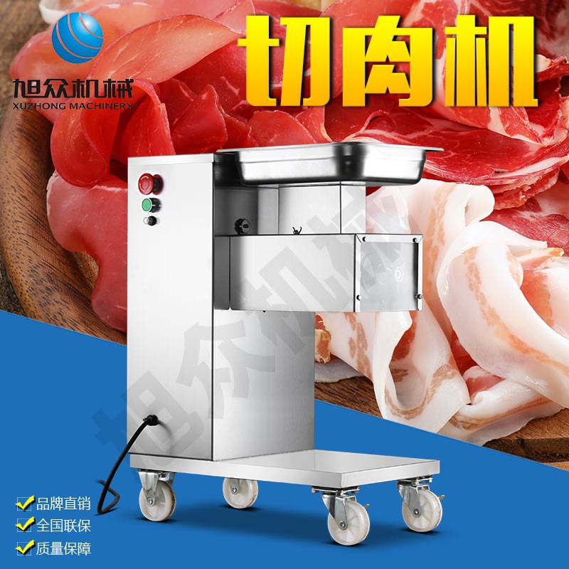 XZ-QE切肉機(jī),是一款可方便移動(dòng)的肉類加工設(shè)備,配置單層刀具一次性切肉片,二次切肉絲,再切成粒。底座設(shè)置有滑輪,移動(dòng)靈活,輕松便捷;刀具采取外置懸臂式設(shè)計(jì),拆洗方便,衛(wèi)生更有保障;配置多種刀具,可加工不同厚度的肉片,實(shí)現(xiàn)一機(jī)多用;機(jī)內(nèi)裝有安全保護(hù)開(kāi)頭,刀具外露時(shí),機(jī)器自鎖不能啟動(dòng),以保安全;刀片用特殊不銹鋼材料制造,經(jīng)久耐用;卸下的刀具,不用清洗直接放置在6攝氏度以下的冰箱里,刀具余肉不發(fā)臭。