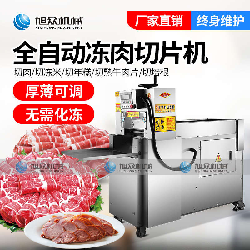 XZ-羊肉切片機(jī),一次成片切片神器,全自動(dòng)凍肉數(shù)控切片機(jī),肉片自動(dòng)打卷|厚薄可調(diào)|無(wú)需化凍|一機(jī)多用。你還用手工切片嗎?旭眾全自動(dòng)羊肉切片機(jī)一機(jī)多用,輕松解決切割問(wèn)題。