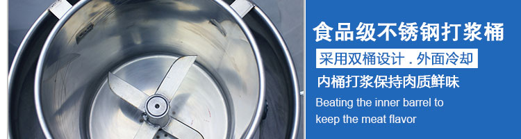 SZ-22型肉丸打漿機,本機裝肉用桶子采用不銹鋼制造,達到衛(wèi)生要求,肉桶外罩和桶底裝有冷卻裝置,確保肉漿新鮮。比手工的打漿更精細,所產(chǎn)肉丸、魚丸彈性好,色澤潔白。