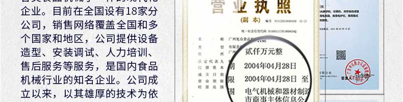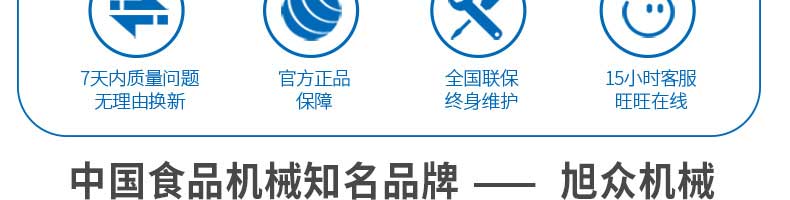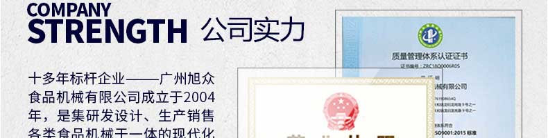 廣州旭眾食品機械有限公司是一家集科研開發(fā),生產(chǎn)設(shè)計,營銷服務(wù)為一體的現(xiàn)代化生產(chǎn)企業(yè)?,F(xiàn)代化生產(chǎn)車間,精湛制造技術(shù),所產(chǎn)機械歷經(jīng)市場重重考驗,不斷贏得海內(nèi)外客戶的贊譽。