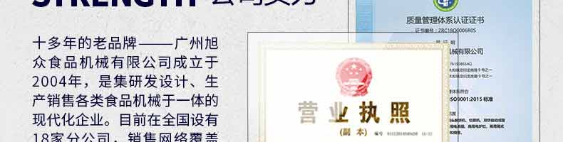 廣州旭眾食品機(jī)械有限公司是一家集科研開發(fā),生產(chǎn)設(shè)計(jì),營(yíng)銷服務(wù)為一體的現(xiàn)代化生產(chǎn)企業(yè)。現(xiàn)代化生產(chǎn)車間,精湛制造技術(shù),所產(chǎn)機(jī)械歷經(jīng)市場(chǎng)重重考驗(yàn),不斷贏得海內(nèi)外客戶的贊譽(yù)。