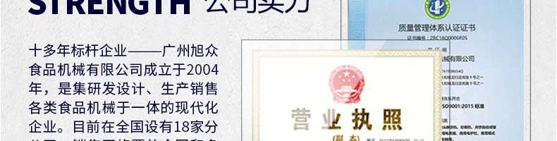 廣州旭眾食品機械有限公司是一家集科研開發(fā),生產(chǎn)設(shè)計,營銷服務(wù)為一體的現(xiàn)代化生產(chǎn)企業(yè)。現(xiàn)代化生產(chǎn)車間,精湛制造技術(shù),所產(chǎn)機械歷經(jīng)市場重重考驗,不斷贏得海內(nèi)外客戶的贊譽。