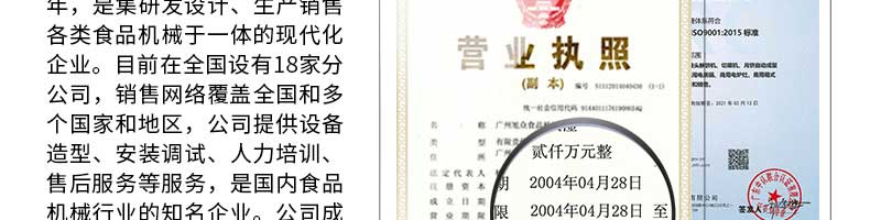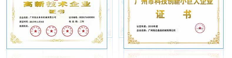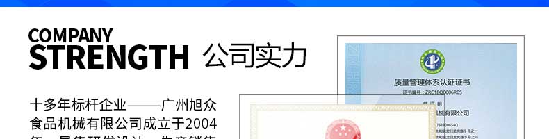 廣州旭眾食品機(jī)械有限公司是一家集科研開發(fā),生產(chǎn)設(shè)計(jì),營銷服務(wù)為一體的現(xiàn)代化生產(chǎn)企業(yè)?,F(xiàn)代化生產(chǎn)車間,精湛制造技術(shù),所產(chǎn)機(jī)械歷經(jīng)市場(chǎng)重重考驗(yàn),不斷贏得海內(nèi)外客戶的贊譽(yù)。