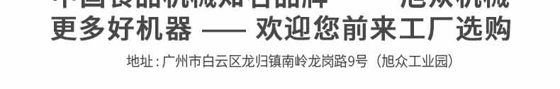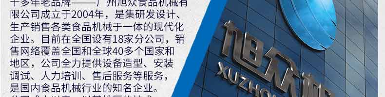 廣州旭眾食品機(jī)械有限公司是一家集科研開(kāi)發(fā),生產(chǎn)設(shè)計(jì),營(yíng)銷服務(wù)為一體的現(xiàn)代化生產(chǎn)企業(yè)。現(xiàn)代化生產(chǎn)車(chē)間,精湛制造技術(shù),所產(chǎn)機(jī)械歷經(jīng)市場(chǎng)重重考驗(yàn),不斷贏得海內(nèi)外客戶的贊譽(yù)。